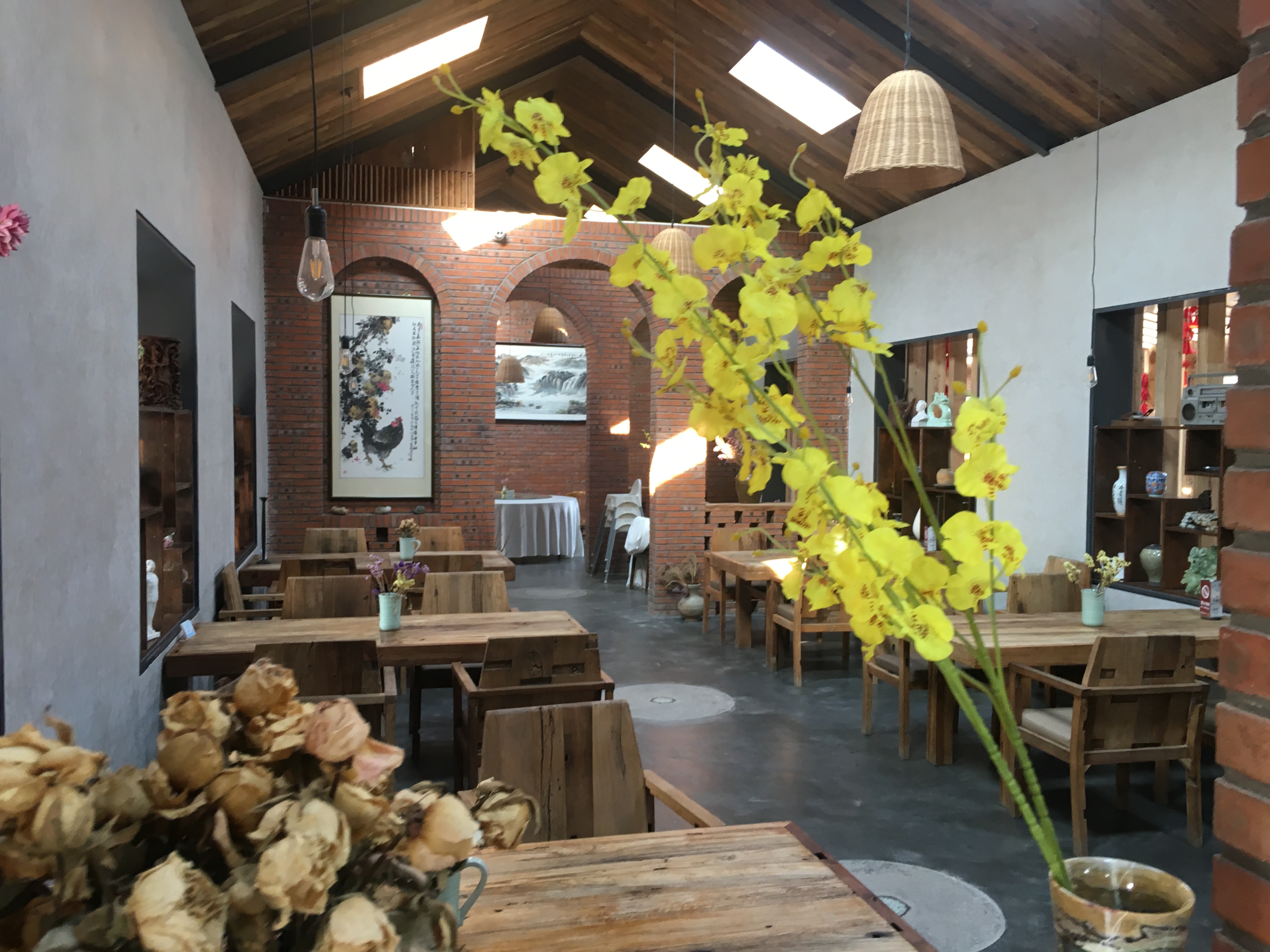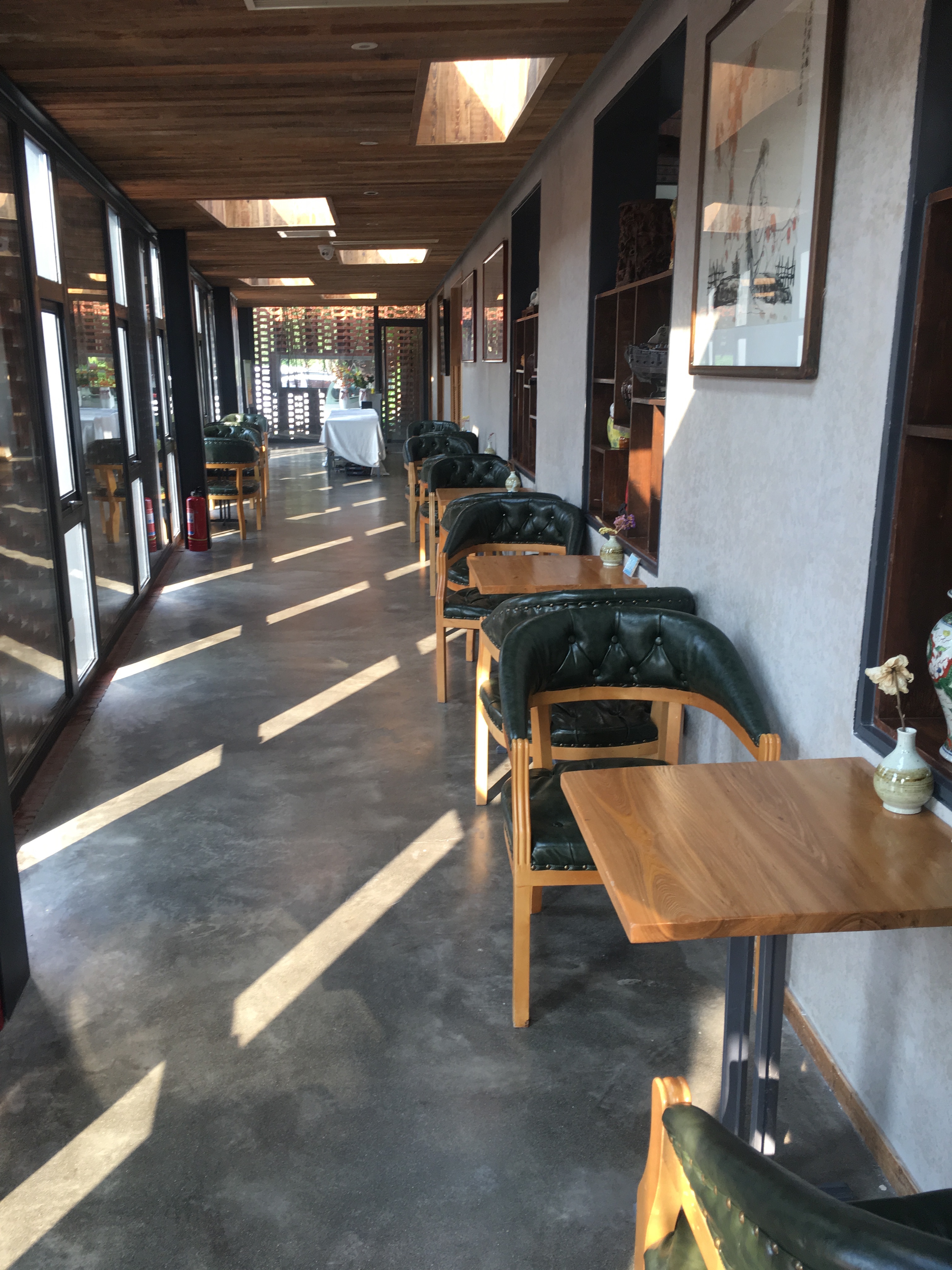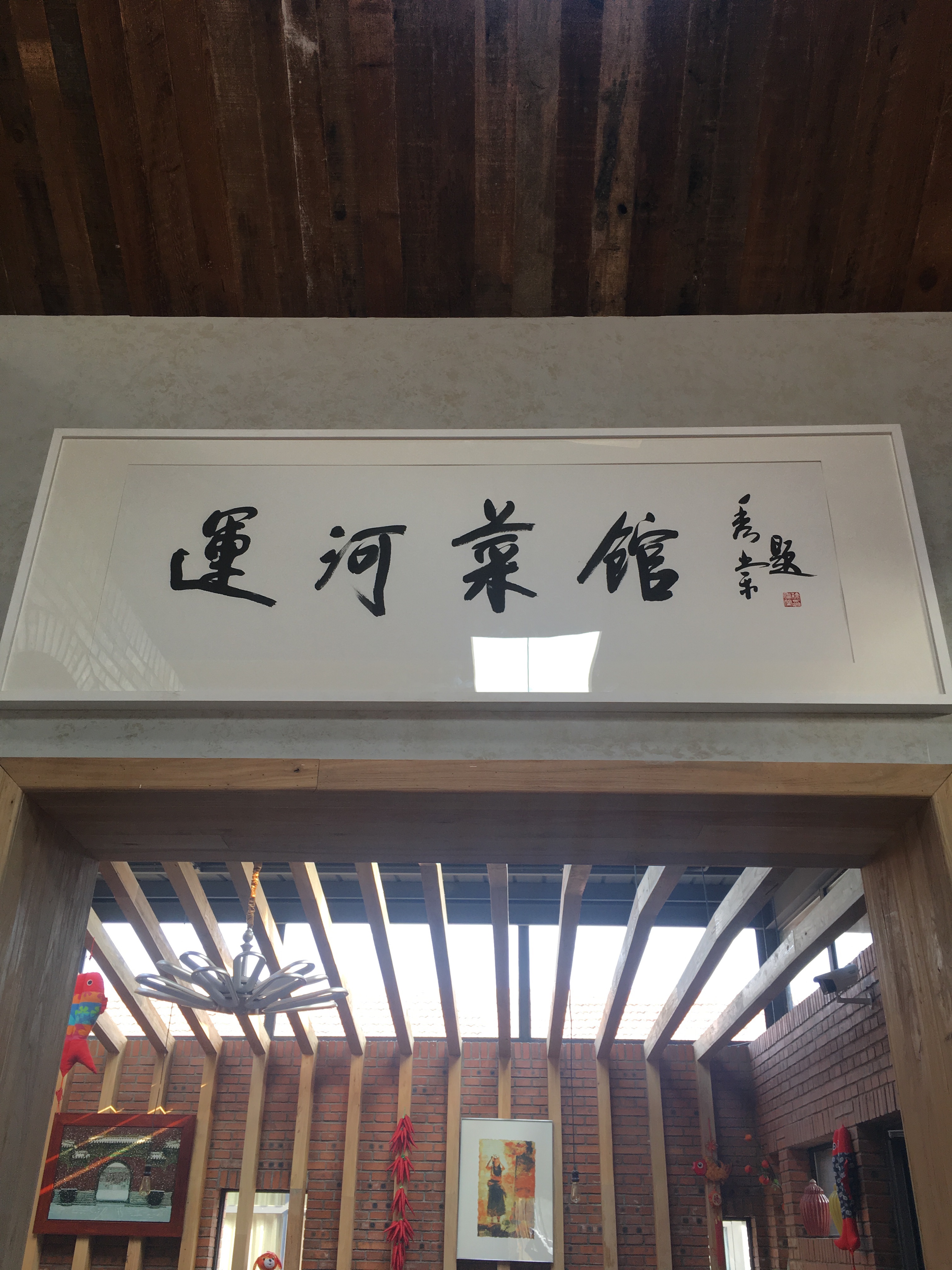 我们出去的时候本来要去正门,也叫西一门,但不知不觉地却走到了西二门,发现这里有一个运河菜馆,里面的风格很适合休闲和读书。